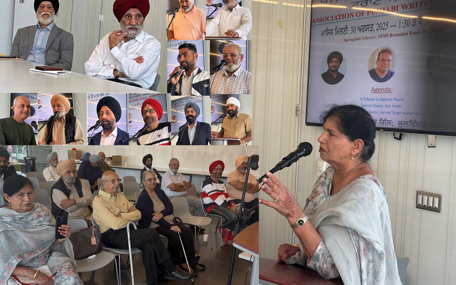 ਬਰੈਂਪਟਨ, 8 ਸਤੰਬਰ (ਪੰਜਾਬ ਮੇਲ)- 30 ਅਗਸਤ ਨੂੰ ਰਛਪਾਲ ਕੌਰ ਗਿੱਲ ਦੀ ਸੰਚਾਲਨਾ ਹੇਠ ਹੋਈ ਕਾਫ਼ਲੇ ਦੀ ਮੀਟਿੰਗ ਦੌਰਾਨ ਗ਼ਜ਼ਲਗੋ ਅਜੀਤ ਹਿਰਖੀ ਅਤੇ ਜਰਨੈਲ ਸਿੰਘ ਕਹਾਣੀਕਾਰ ਨਾਲ ਗੱਲਬਾਤ ਹੋਈ ਅਤੇ ਲਹਿੰਦੇ ਪੰਜਾਬ ਦੇ ਲੇਖਕ, ਕਲਾਕਾਰ ਸਲੀਮ ਪਾਸ਼ਾ ਨੂੰ ਸ਼ਰਧਾਂਜਲੀ ਭੇਟ ਕੀਤੀ ਗਈ।